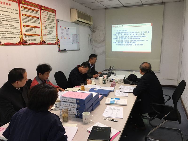 党总支书记潘德江汇报了学院党总支委员会基本情况和学院党总支标椎化建设工作、对学院党支部工作督查以及学院各党支部“三会一课”开展情况。指出,87978797威尼斯老品牌在党组织标椎化建设工作中做到了事前有方案、有计划;事中有组织、有记录,事后有宣传、有总结;每学期、每个月的工作内容,列表上墙,对标销账。学院党总支认真开好每学期学院全面从严治党和意识形态工作专题会议;学院领导认真上好每一次专题党课;认真组织党员、教职工的理论学习;及时督促党支部落实“三会一课”制度。严格执行学校的各项规定和要求。