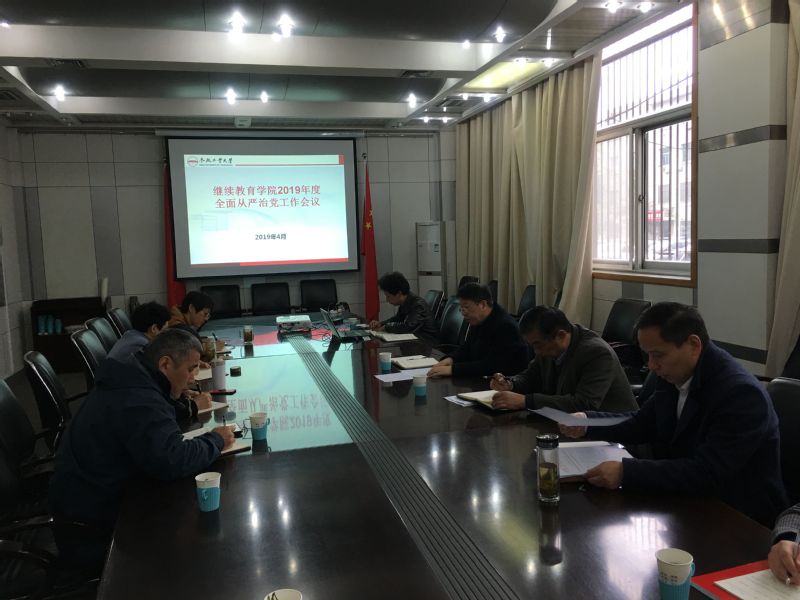 今年是新中国成立70周年,是全面贯彻落实全国教育大会精神的开局之年,也是学院转型发展、内涵提升的关键一年。新时代,全面从严治党责任重大,我们要深入贯彻落实习近平新时代中国特色社会主义思想和党的十九大精神,不忘初心,牢记使命,保持政治定力,坚守政治担当,用“四个意识”导航、用“四个自信”强基、用“两个维护”铸魂,深入推进全面从严治党向纵深发展,坚定不移把从严治党的工作贯彻落实到学院的各项工作中,着力写好学院继续教育改革发展的“奋进之笔”,为学校“双一流”建设做贡献,以优异的成绩迎接新中国成立70周年。